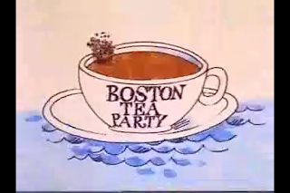 Words, music and image seem designed to tell a story children could relate to. The animation makes the world appear small, so that a ship can easily sail across a small ocean, across which a king can watch his subjects through a spyglass. The Boston Tea Party is represented inside a teacup, which is reminiscent of a child's tea set. The Mayflower and the house, over which people tower, are also toy-like.